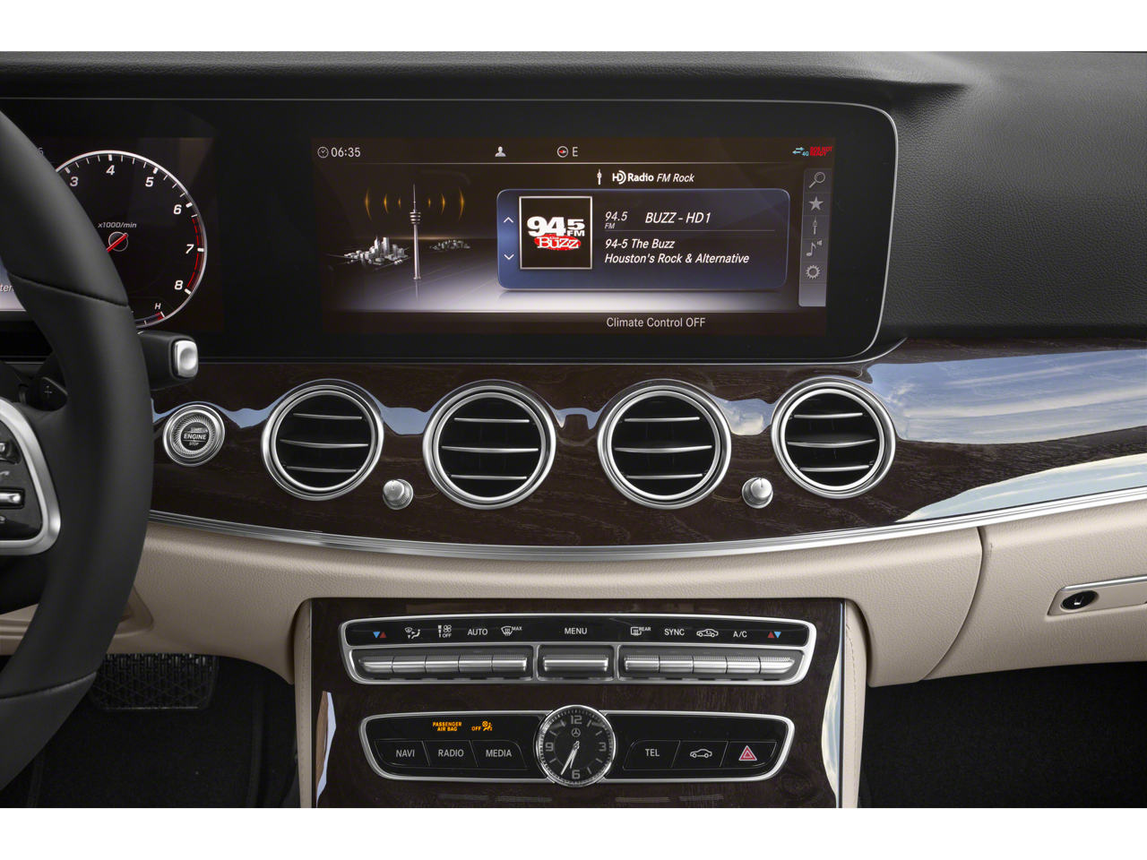 - Steering wheel material: Leather and genuine wood steering wheel